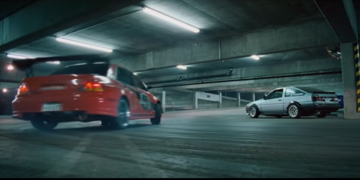 Durante una de las secuencias en las que se practica drift en uno de los parkings de la ciudad de Tokyo se puede ver un Toyota Trueno AE86. Este modelo de coche se obtuvo una gran popularidad gracias al éxito del manga Initial D, que trataba sobre todo de drifting. El título japonés fue escrito e ilustrado por Shūichi Shigeno, publicado originalmente en la revista de Kōdansha, Young Magazine desde 1995.
