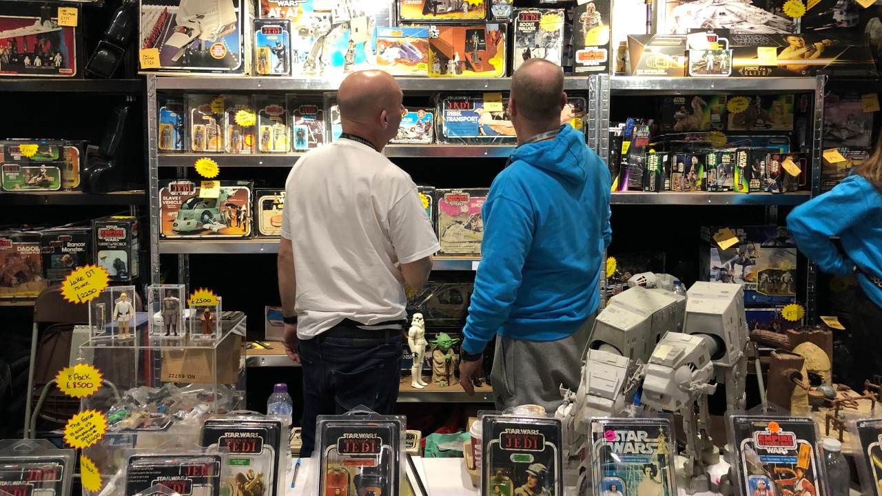 La Star Wars Celebration es la Meca del coleccionismo de Star Wars. Los asistentes a la convención pueden comprar piezas vintage valoradas en pocas libras o hacerse con unas cartas muy raras de Boba Fett por 18.000 libras, por poner un ejemplo. "Viene mucha gente que compra las figuras de 5 dólares. Luego hay coleccionistas más de nicho o coleccionistas de arte que llegan a los miles de libras", explican desde Yub Nub Toys.