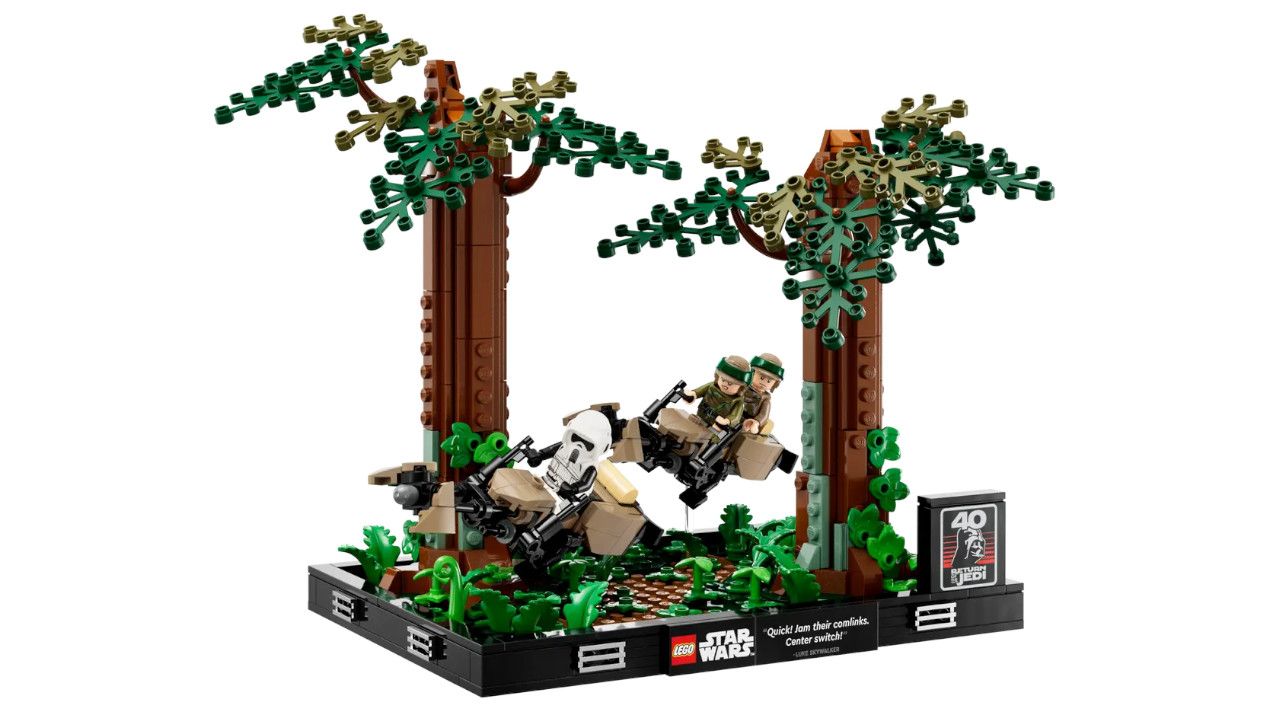 La marca LEGO tiene diferentes tipos de construcciones que se diferencian enormemente en su diseño, y en menor medida hacia quién van dirigidas. Ya hay diferentes dioramas de Star Wars a la venta, pero LEGO ha presentado el que será su próximo modelo para aprovechar el 40 aniversario de 'El retorno del Jedi': el Duelo de Speeders de Endor, que ya está disponible para reservar por 79,99 euros. También lo encontramos para reservar en Amazon al mismo precio.