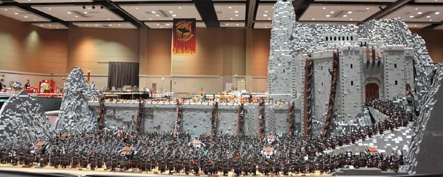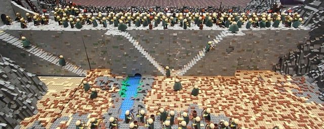 Aproximadamente 150.000 piezas LEGO y 1.700 minifiguras se utilizaron para recrear una de las escenas más épicas de la historia del cine, la Batalla del Abismo de Helm, tal como se ve en la segunda entrega de la trilogía El Señor de los Anillos de Peter Jackson, Las Dos Torres (2002). Una increíble construcción para la que necesitaron, como se informó en su día cuando la espectacularidad de la creación dio la vuelta al mundo, cuatro meses de trabajo. El tamaño de la recreación de la escena era de aproximadamente una mesa de ping-pong -3 metros de largo y 1,5 de ancho- y pesaba más de 72 kilos.