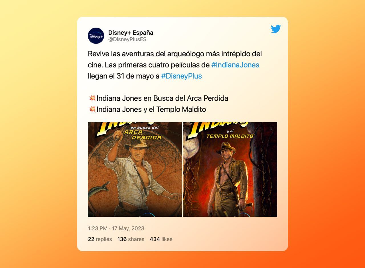 La plataforma de 'streaming' ha anunciado que las cuatro entregas de Indiana Jones -En busca del arca perdida, El templo maldito, La última cruzada y El reino de la calavera de cristal- se incluirán en su catálogo. Así que, apunta bien el día 31 de mayo porque es el elegido para este estreno.