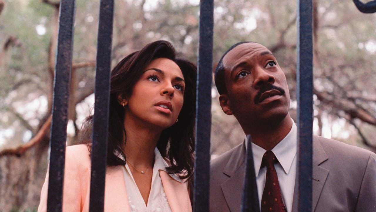 Mansión encantada (Haunted Mansion) sigue a una madre soltera. La protagonista, a quien da vida Dawson, recluta a un grupo de expertos paranormales para enfrentarse a los fantasmas de su casa de Nueva Orleans. En la versión de Murphy, los protagonistas eran una pareja de agentes inmobiliarios que se quedan encerrados en la mansión junto a sus dos hijos.