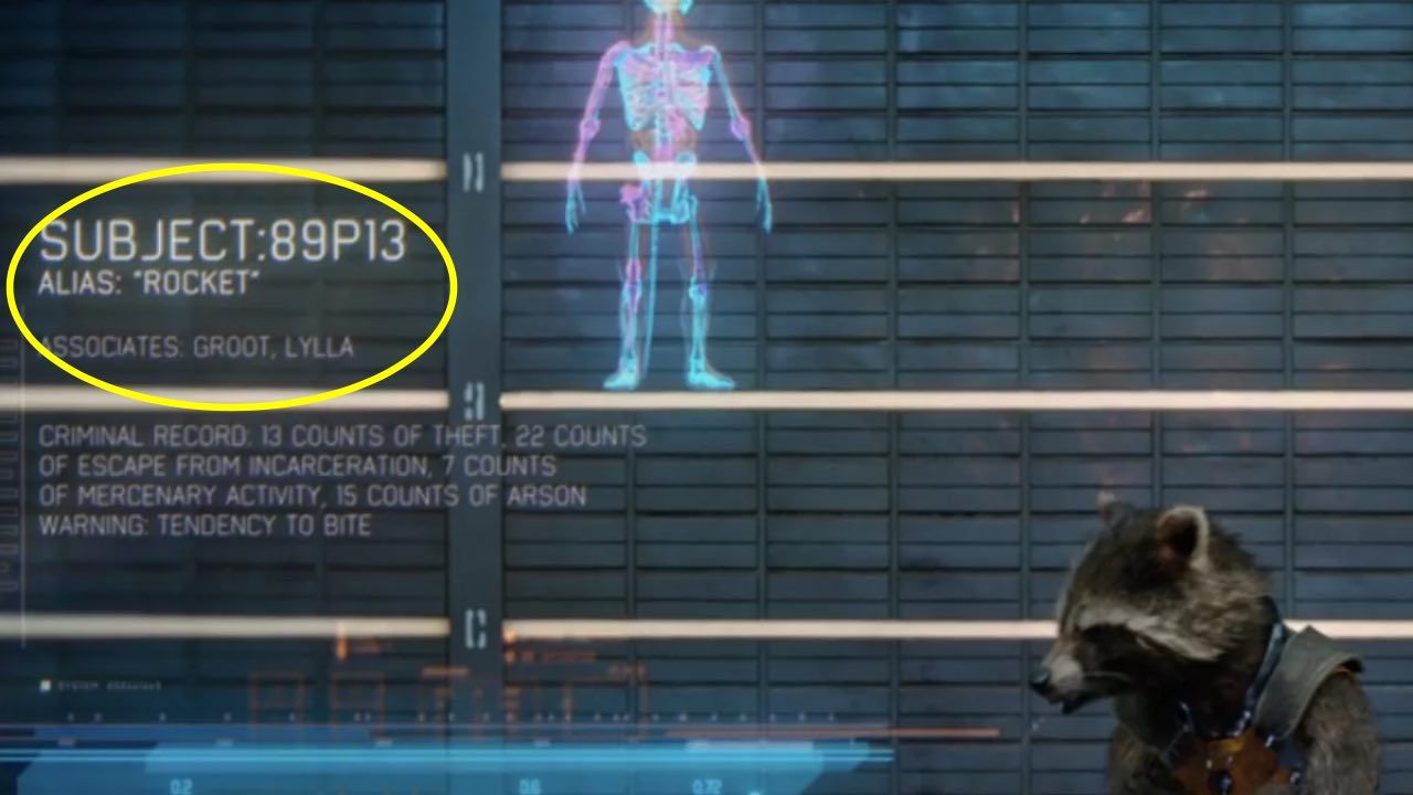 El momento tiene lugar en la cárcel en la que terminan Star-Lord, Gamora (Zoe Saldaña), Drax (Dave Bautista) y Groot (Vin Diesel). Cuando están analizando a cada uno de ellos, la ficha de Rocket no solo muestra el número de serie que le dio Alto Evolucionador -89P13-, también aparece el nombre de Lylla en el apartado "Asociados" junto al de Groot.