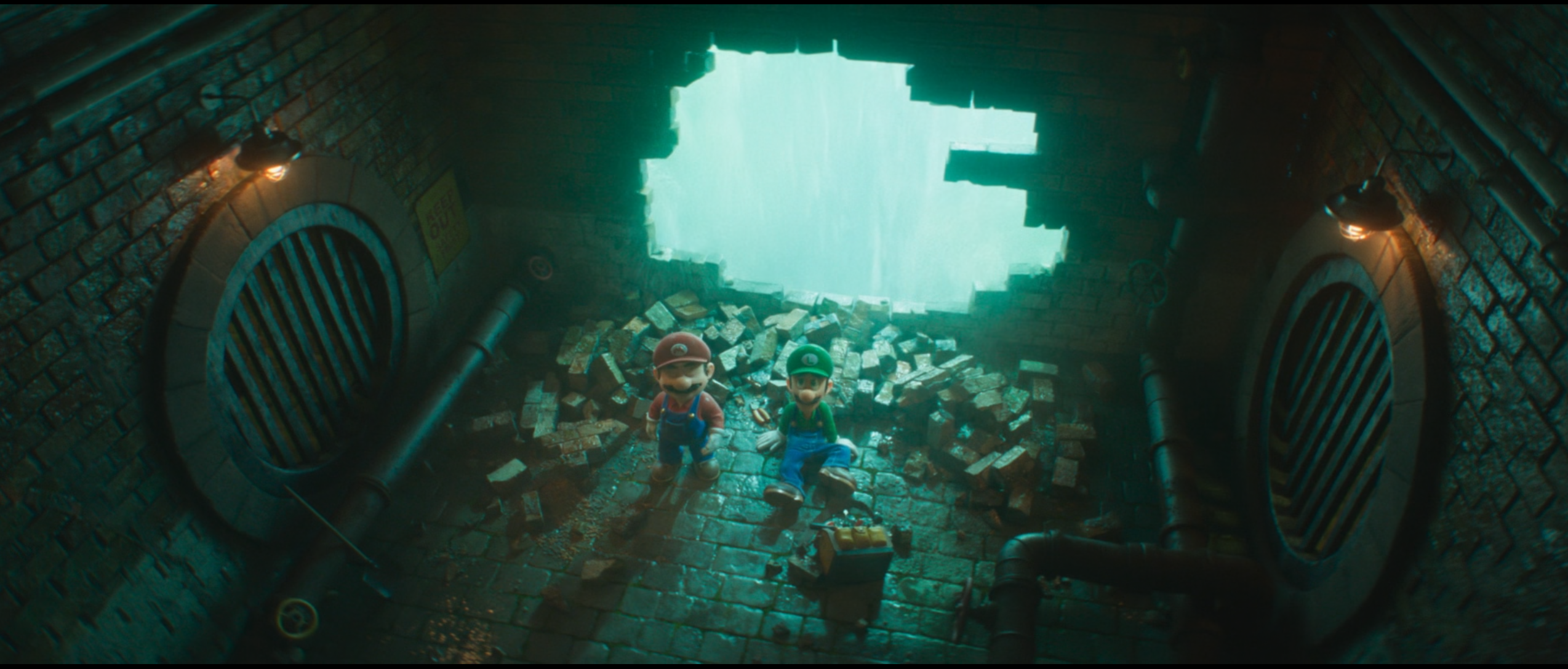 Cuando Mario y Luigi rompen una pared tratando de parar la inundación en Brooklyn, el resultado que se queda marcado en la misma, como si se tratara de un corto de los Looney Tunes, es la cara de Mario en el primer juego de la saga, píxel a píxel. Sin duda, los más fans reconocieron inmediatamente la silueta del juego de 1985, aunque los hay que le echan en cara a la Super Mario Bros: La película que es una colección de easter eggs.