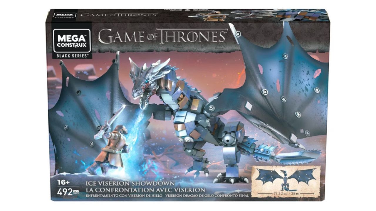Con un total de 501 piezas, podemos construir al dragón de Daenerys, Viserion. Se trata del dragón que toma forma y diseño tras convertirse en un aliado del Rey de la Noche. Mide un total de 71 centímetros de ancho y, además, viene con una figura de Jon Nieve.