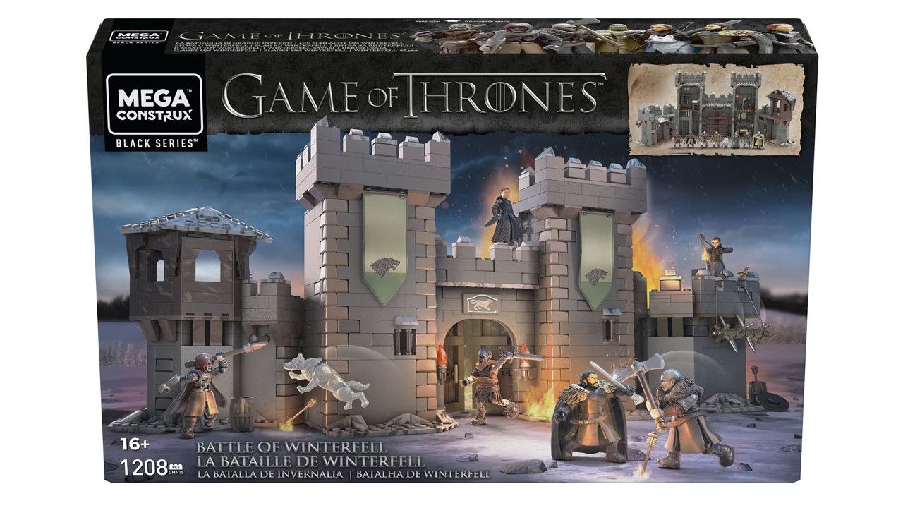 Esta construcción, de la marca MEGA y con un total de 1.208 piezas, cuenta con los altos muros de Invernalia, por supuesto el emblema de los Stark, trampas para hacer frente a los Otros y desde la parte de atrás podemos ver algunas habitaciones y salas de armas del castillo. También encontramos a siete de los personajes más importantes de la serie o de los libros, como a Jon Nieve, Sansa Stark, Arya Stark y a Fantasma.