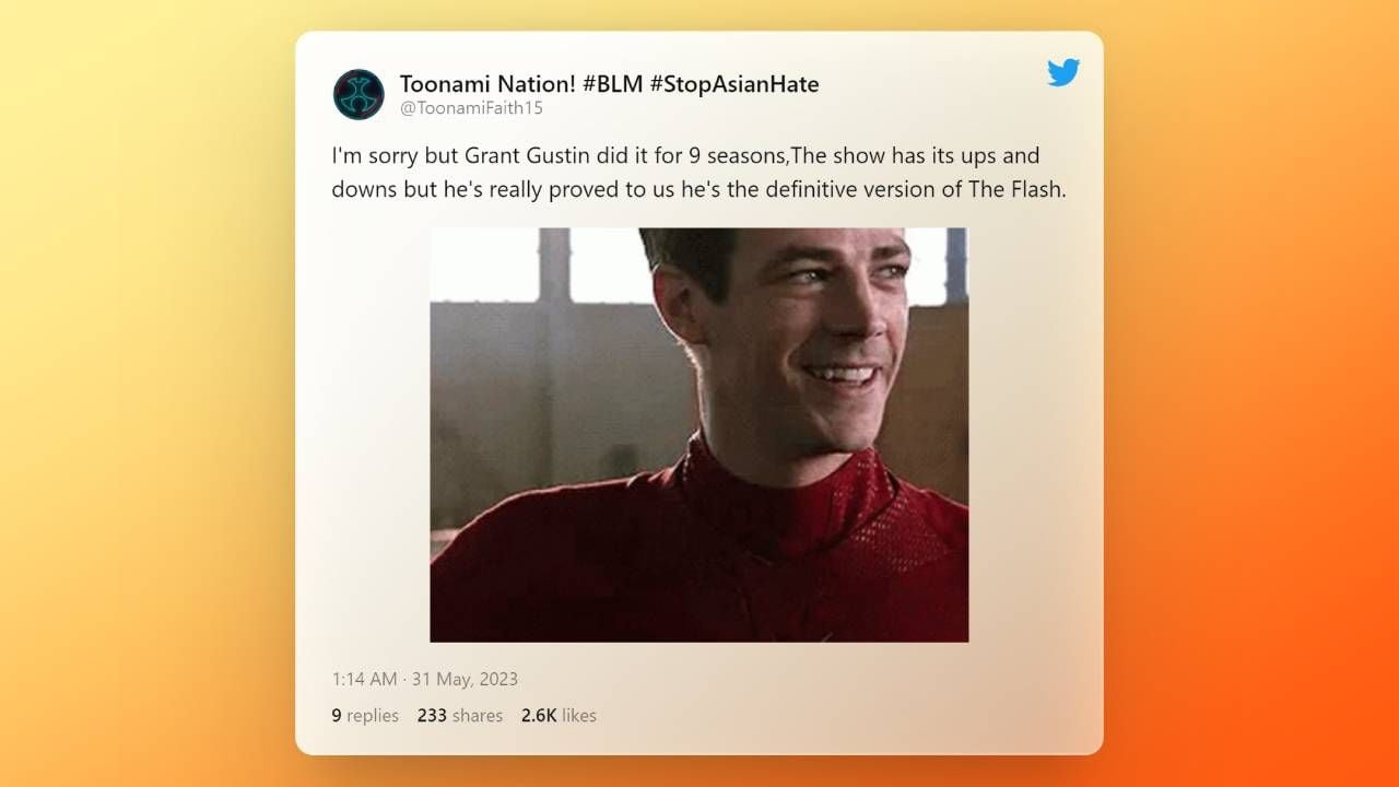 "Lo siento, pero Grant Gustin lo ha hecho durante nueve temporadas. La serie ha tenido sus altos y sus bajos pero nos ha demostrado que es la versión definitiva de The Flash".