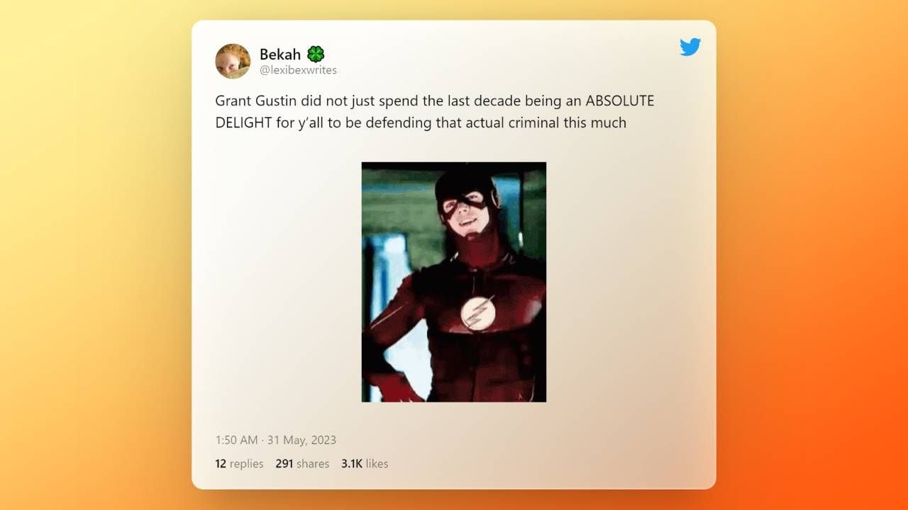 "Grant Gustin no se ha pasado la última década siendo un placer absoluto para todos como para defender tanto a ese criminal".