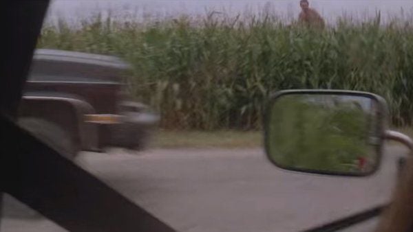 Probablemente esta imagen nunca se hubiera descubierto si no fuera porque Twister fue la primera película de la historia en salir en DVD en Estados Unidos. Y claro, entre prueba y prueba dándole al pause apareció un señor cubriendo sus partes íntimas tan solo con un trozo de maíz. ¡Y sin protegerse del tornado ni nada!