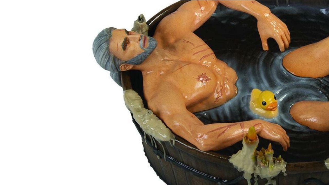No es la versión de Henry Cavill la que vemos en esta figura de Geralt, sino la de 'Wild Hunt', la del tercer videojuego. Considerado como el mejor juego del año por muchos motivos, sorprende que una de las escenas que más recordamos del videojuego sea la de la mítica aparición del brujo en una bañera.