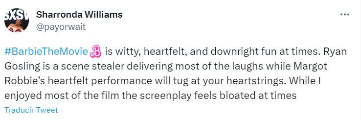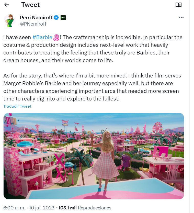 Pero aquí va la primera pega al experimento de Gerwig. "Creo que la película sirve especialmente bien a la Barbie de Margot Robbie y su viaje, pero hay otros personajes que experimentan arcos importantes que necesitaban más tiempo de pantalla para realmente profundizar y explorar al máximo", continúa la crítica de cine.