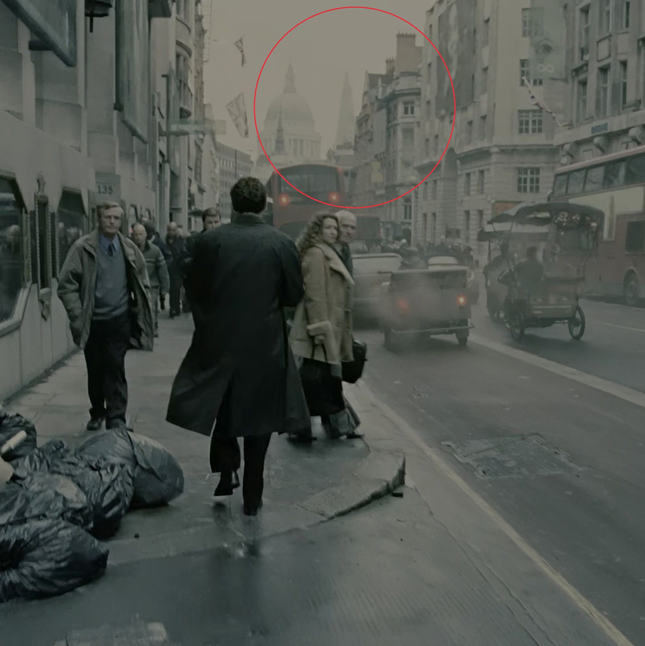El cine no solo debe centrarse en acertar con los hechos históricos cuando cuenta eventos pasados, sino también cuando cuenta los futuros. Es el caso de Hijos de los hombres, que tuvo que preparar el skyline de Londres tal y como se vería en el 2027. O sea, los edificios que en 2005, durante el rodaje, estuvieran aún a medio construir o simplemente planeados, tenían que salir ya completados.