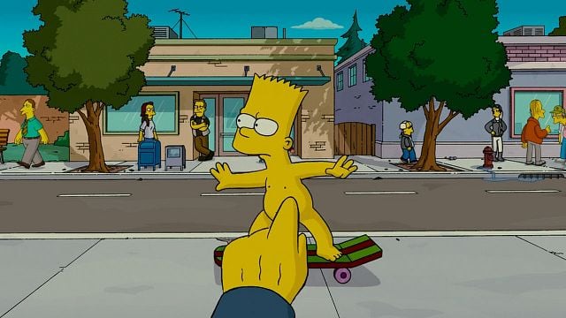De hecho, no sorprendería mucho que un chiste concreto fuese el mayor motivo de disputa entre los creativos y los encargados de dar el visto bueno al contenido de la película. Hablamos, claro, del momento donde Bart Simpson acepta una apuesta para hacer su tradicional recorrido por monopatín por la ciudad de Springfield, pero completamente desnudo.