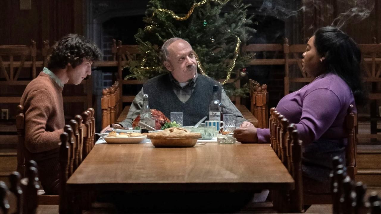 Giamatti da vida al Sr. Hunham, un profesor de literatura clásica que bebe demasiado, tiene un ojo de cristal, huele mal y es abiertamente odiado por sus alumnos. En contra de su voluntad, es obligado a quedarse cuidando a un grupo de estudiantes que no puede regresar a casa por Navidad, un imprevisto que terminará transformando su vida.