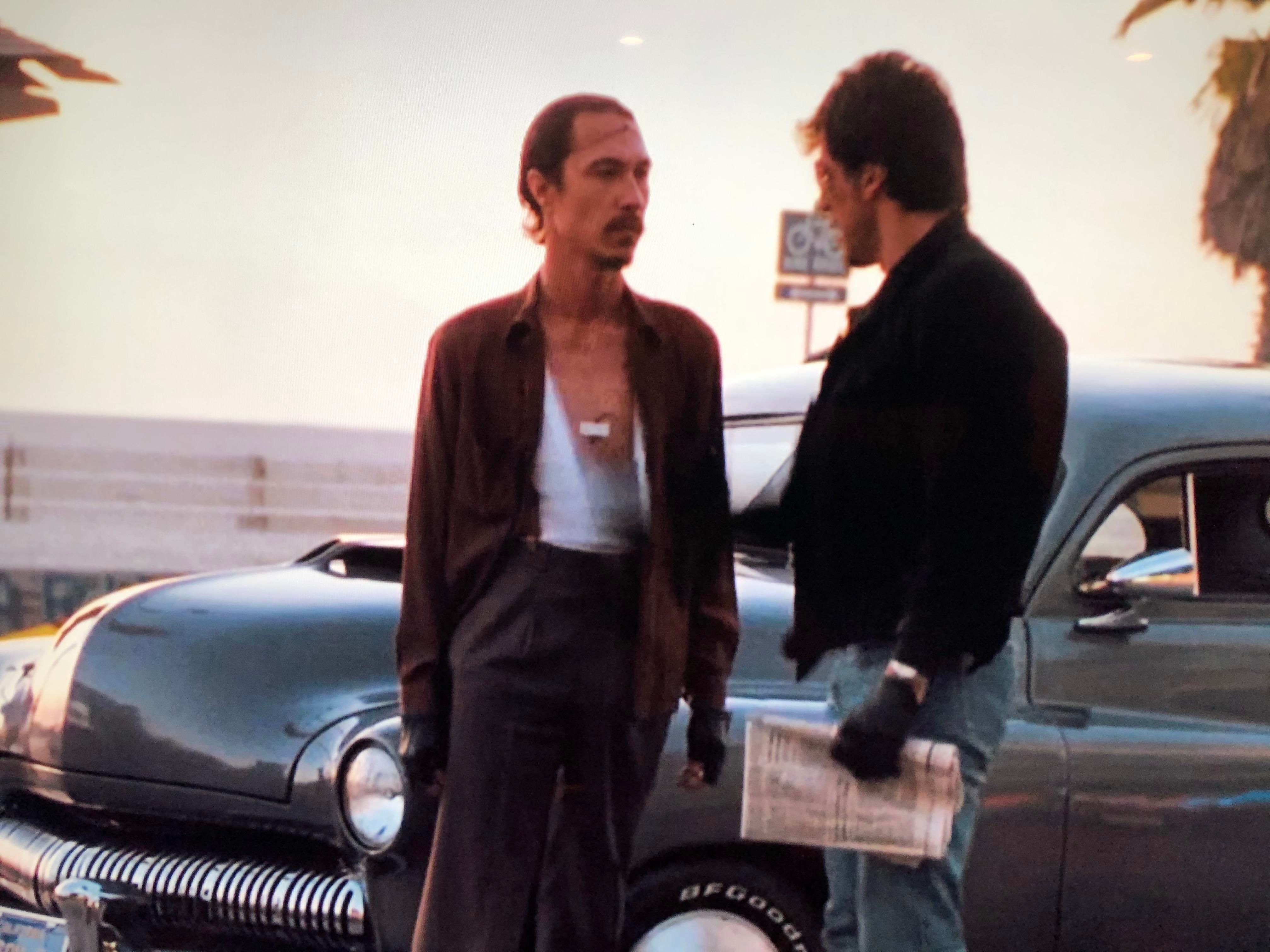 Para ejemplo, este momento en el que Cobretti se acerca al actor John Hauk y, en un ataque de ira improvisado, le rompe la camisa. ¿Cuál es el problema? Que Hauk estaba microfonado debajo de la ropa con el aparato pegado a la piel con esparadrapo. Se vio perfectamente, pero no le importó a nadie y acabó así en el metraje final de la película. Alucinante.