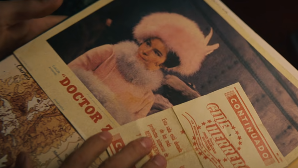 Pero estarás pensando que no has visto a Chaplin en la película de Netflix, principalmente protagonizada por hombres jóvenes. Sin embargo, se trata de un cameo para el que ni siquiera hizo falta que se moviera de su casa. Justo antes de empezar el viaje, Numa Turcatti está mirando un libro y en su interior aparece ella en una foto de Doctor Zhivago, su primer gran papel, en 1965, que le valió la nominación al Globo de Oro.