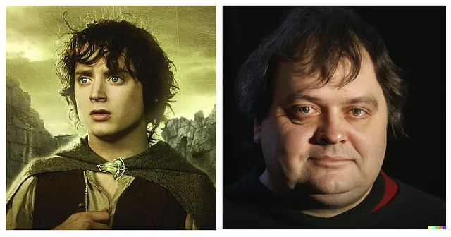 Cualquiera podría pasar por alto estas licencias artísticas, pero la IA, destinada a quitarnos la imaginación mostrándonos cosas que nadie había pedido, nos enseña cómo se imagina al Frodo Bolsón de Tolkien. Por supuesto, cometiendo el error de creer que ha envejecido como una persona normal y metiendo la pata hasta el fondo. De hecho, a lo largo de los años ha habido miles de dibujos de Frodo, antes y después de la cinta, y nadie, jamás, lo había representado así. No os fiéis de lo que dice la IA: puede ser divertido, pero tiende a no dar una bien.