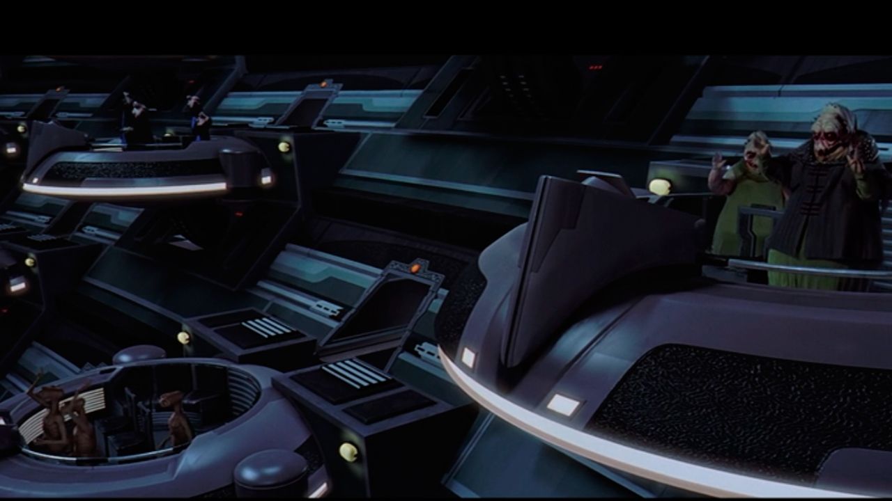 La especie, conocida en el canon de Star Wars como Asogianos, pueden interceptarse en el minuto exacto 1 hora 29 minutos y 11 segundos, abajo a la izquierda de la pantalla.