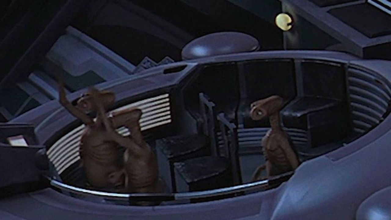 La especie alienígena a la que pertenecía el protagonista de E.T. tiene lugar durante la reunión del Senado Galáctico de la República, en la que Padmé (Portman) pide un voto de censura al Canciller Valorum (Terence Stamp), lo que allana el camino para que Sheev Palpatine (Ian McDiarmid) se acabe convirtiendo en Canciller de la República.