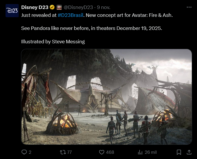 Una nueva tribu que presenta junto con el llamado Pueblo Ash, la tribu del fuego de Pandora, que hace tiempo que se confirmó para Avatar 3 tras haber conocido a la acuática Metkayina en la segunda película y que Cameron describía en el panel como el "lado oscuro de los Na'vi".