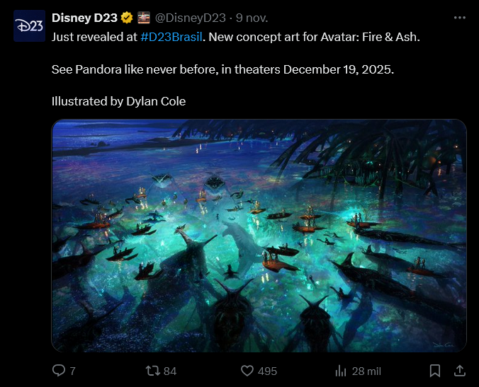 Rodada de forma simultánea a la primera secuela en un importante porcentaje, Avatar 3 se encuentra de lleno en la etapa que más disfruta James Cameron, en la postproducción, y hace tiempo que los fans de la saga tienen una fecha en la que poner sus miras. Bajo el título Avatar: Fire & Ash -Avatar: Fuego y ceniza- la tercera película de la franquicia de ciencia ficción se estrenará el 19 de diciembre de 2025.