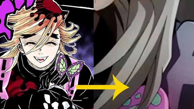 En el manga de Koyogaru Gotouge empieza realmente con esta batalla, siendo Shinobu la primera en morir. Por lo que este detalle seguramente no haya sido puesto al azar, sino para los más fans que se hayan dado cuenta de la mariposa de Shinobu en el traje de Doma.