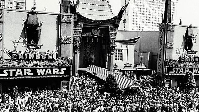 Por aquel entonces, muy pocos cines querían mostrar Star Wars, convencidos de su fracaso: un total de 32 salas en todo el país. Un mes después, superaba el millar de proyecciones, e incluso los personajes se juntaron para poner sus huellas delante del Teatro Chino. ¡Cena, vacaciones en Hawai y exitazo! Toma plan.