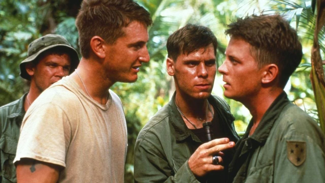 'Apocalypse Now 'se clasificaría en otra categoría, ya que la película de Coppola trasciende la guerra. ['Corazones de hierro'] presenta la secuencia de violación más traumatizante de la historia del cine. También es una de las mejores interpretaciones de Sean Penn, aterrador en el papel del sargento jefe de escuadrón