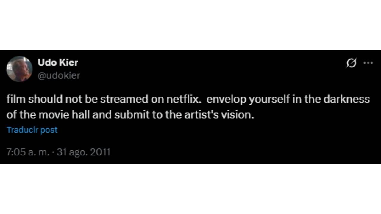 Udo Kier, actor de más de 200 películas que ha fallecido este domingo a los 81 años, solo escribió un tuit en toda su vida: "Una película no debería emitirse en Netflix. Envuélvete en la oscuridad de la sala de cine y sométete a la visión del artista". A ver, igual no hace falta con todos los filmes, pero en casos como Sueños de trenes, tenía razón.