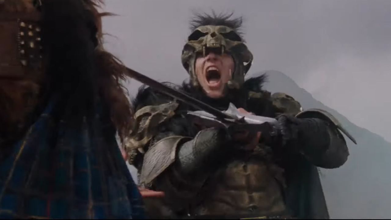 La primera vez que escuchamos esta frase icónica es al principio de la película. Tras la escena inicial, que enfrenta a Russell Nash contra Iman Fasil, la película cambia abruptamente a 1536, el año en que Connor MacLeod y el clan MacLeod se enfrentaron al clan Fraser. Durante esta batalla, aparece un caballero con una pesada armadura oscura y un cráneo en la cabeza. Este imponente guerrero dio órdenes a sus hombres: él sería el único que lucharía contra Connor MacLeod. ¿Por qué? El misterio sigue sin resolverse en este punto de la película. Cuando ambos hombres se encuentran, MacLeod pronto se ve en apuros y, a punto de ser decapitado, el caballero le entrega un mensaje profético: "Solo puede haber uno".
