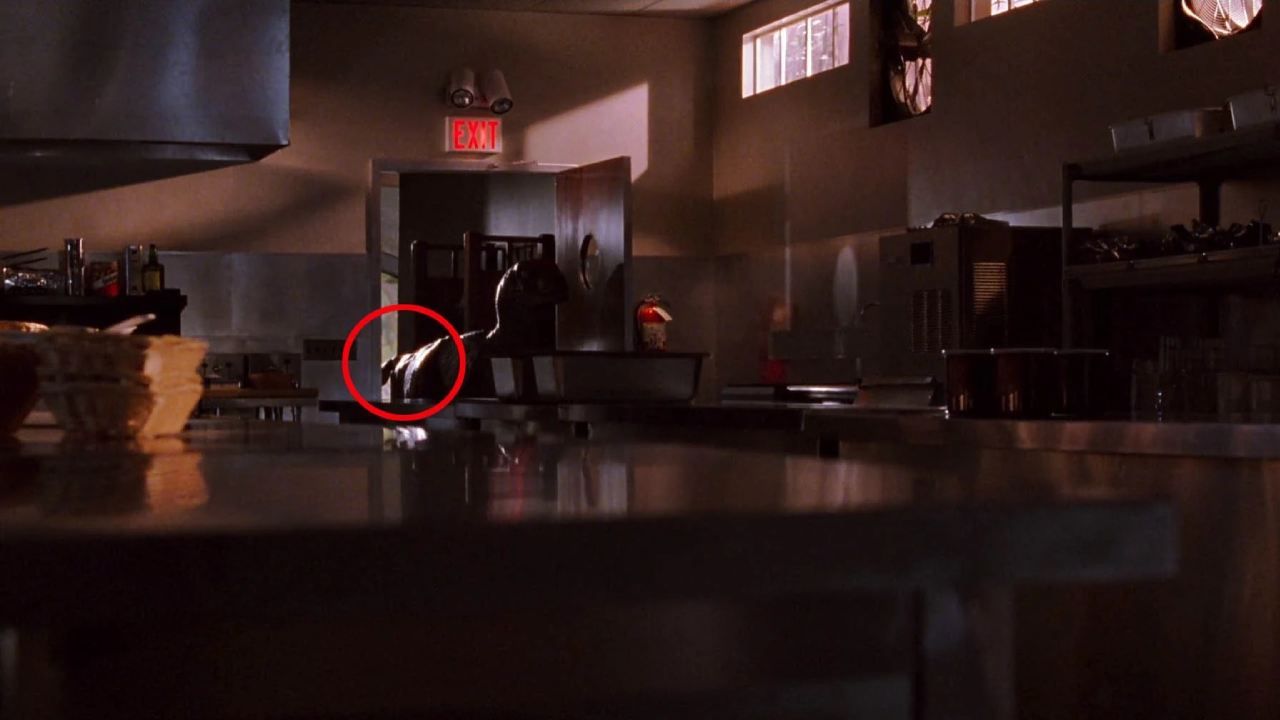 Pero, por perfecto que pareciera todo en pantalla, hay algunos errores que se pueden apreciar, pero solo si pones ojo avizor. Piensa en la escena de la cocina y los velocirraptores entrando poco a poco... Y para la película en el minuto 109 y 10 segundos, porque allí verás la mano de alguien del equipo sosteniendo la cola del velocirráptor para que no se caiga. También es verdad que ocurre de fondo y durante un segundo, pero los cazadores de gazapos lo pillaron a la primera.