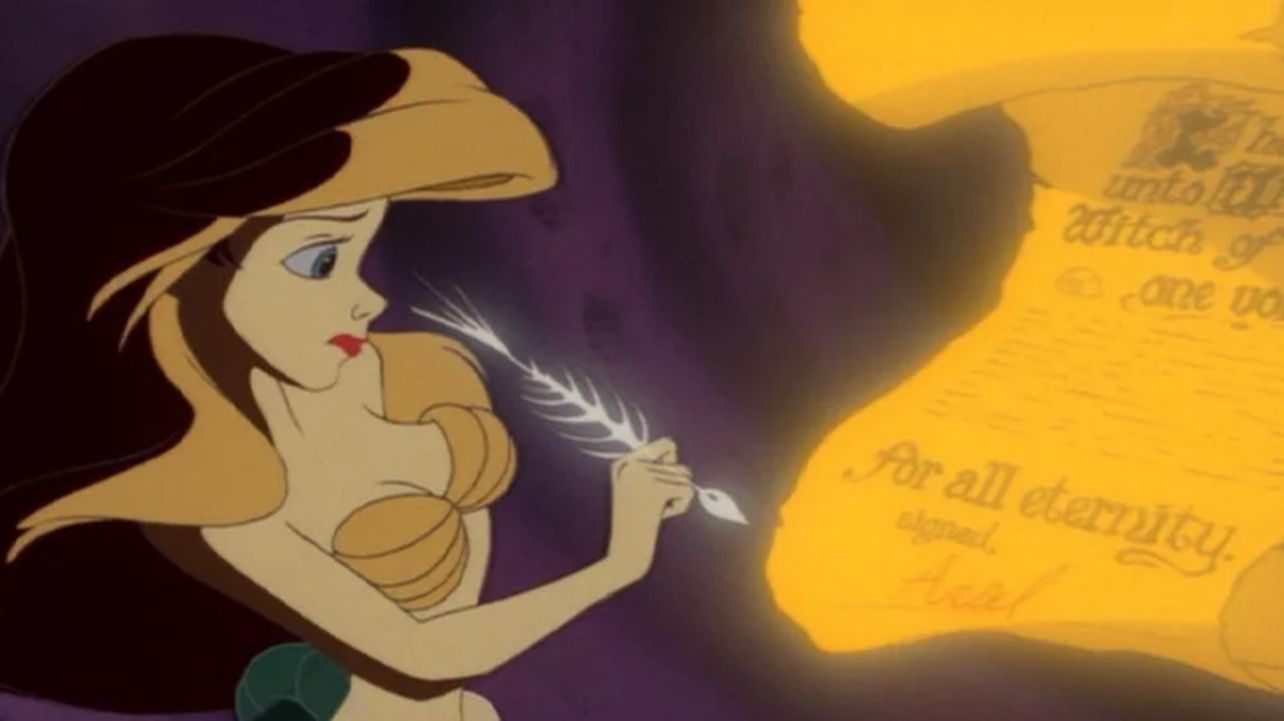 Y sin embargo, hay un agujero de guion del que nadie pareció darse cuenta (o todos pasamos por alto). Ariel queda muda tras su trato con Úrsula, sí, pero sabemos que puede escribir porque firma dicho contrato. Entonces... ¿Qué le impide, en la superficie, escribir en una nota de papel "Hola, soy quien te salvó aquel día, pero resulta que soy muda" y ahorrarse tantos sufrimientos? Sí, claro, nos habríamos quedado sin números musicales como Bésala, pero, a nivel narrativo, es, sin duda, infinitamente más sencillo.