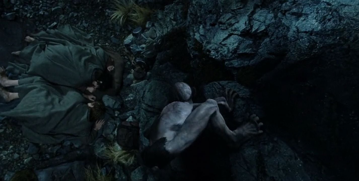 Sin embargo, en Las dos torres ya nos dan una pista de su origen, cuando, en una de sus primeras escenas, podemos ver los pies de Gollum durante un segundos: son tan grandes como los de cualquier hobbit. Entonces era un guiño para los lectores del libro, pero se acabó convirtiendo en un augurio de la revelación de la siguiente entrega. Peter Jackson, genio y figura.