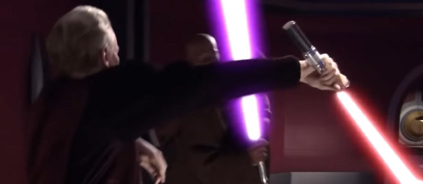 En La venganza de los Sith, hay un momento en el que vemos a Palpatine luchando con su clásico sable rojo... ¿O quizá no? El mango nos deja ver claramente que es el de Anakin Skywalker. Sin embargo, no era un error del equipo de arte: originalmente, durante el duelo con Mace Windu también iba a estar Anakin, pero al ser derrotado y Palpatine usaba su espada. Al cortar esos planos en edición, el acto dejaba de tener sentido, pero ya estaba rodado.