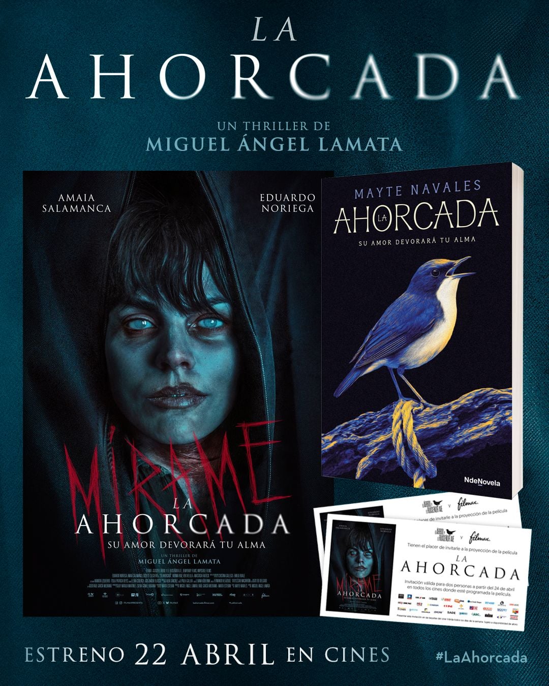 Con motivo de este inminente estreno, desde SensaCine sorteamos 5 packs especiales que contienen: un ejemplar de la novela homónima de Mayte Navales, también guionista de La ahorcada, y una entrada doble para que disfrutes de la película en el cine. ¡Sigue leyendo para saber cómo participar!