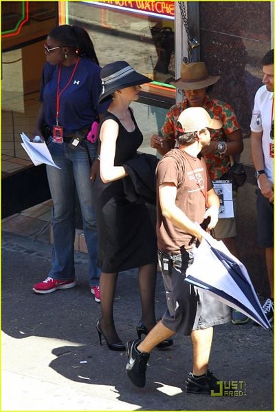Desde que comenzara el rodaje de 'El caballero oscuro. La leyenda renace', no pasa una semana sin que lleguen imágenes de los protagonistas del filme de Christopher Nolan en el set. Si el pasado lunes aparecían instantáneas de Anne Hathaway envuelta en una pelea en la que defiende a un niño de un matón, hoy se puede ver, gracias a la web Just Jared, a la actriz, de nuevo en la piel de Selina Kyle, pero esta vez vestida de forma impecable, y en una situación más pacífica. Además de Hathaway, Christian Bale, que vuelve a interpretar a Bruce Wayne, alter ego de Batman, también se ha dejado ver en uno de los escenarios de Los Ángeles.