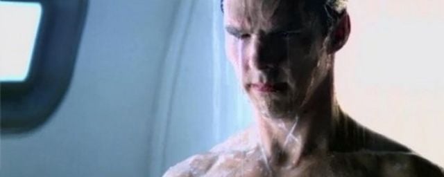 Star Trek: En la oscuridad (Star Trek Into Darkness) pudo haber tenido una escena con Benedict Cumberbatch bajo la ducha marcando pectorales, con el agua cayendo sobre piel. El pasado miércoles J.J. Abrams mostró esa escena, que finalmente ha sido eliminada del montaje, en el late night show de Conan O'Brien para responder a las críticas sobre el posible sexismo en la cinta.