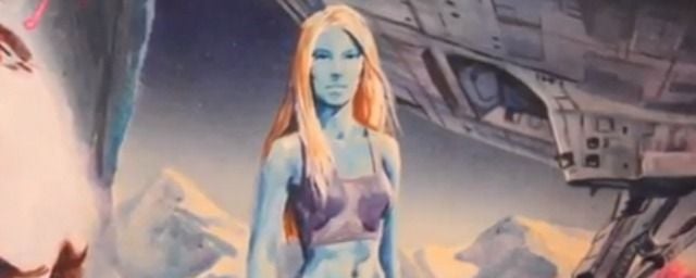 Así lo explica Cameron en Visionaires: "Esta ilustración es de 1976, me parece, y fue para un proyecto que jamás fue a algún lugar. Lo que la hace interesante es que ya entonces pinté a una chica alta, de piel azulada. Su nombre no era Neytiri y el contexto era completamente distinto, pero de alguna manera, ya estaba pensando es eso."