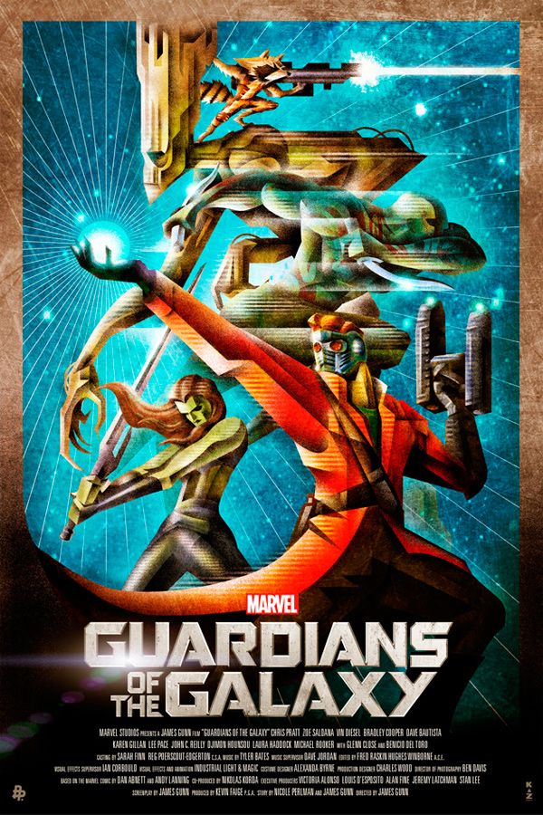 Protagonizada por Chris Pratt (Star-Lord), Zoe Saldana (Gamora), Bradley Cooper (Mapache Cohete), Vin Diesel (Groot) y Dave Bautista (Drax 'El Destructor'), Guardianes de la galaxia está dirigida por James Gunn (Slither: La plaga) y en ella veremos la primera aparición del villano Thanos (Josh Brolin) desde su cameo en Los Vengadores. Además, Marvel ha confirmado que tendrá conexión con Los Vengadores 3 y probablemente trate la trama del Guantelete del Infinito. ¡Mira los carteles!