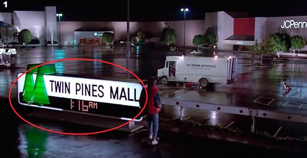 El centro comercial también es el lugar al que Marty viaja atrás en el tiempo en 1955, justo después de que Doc Brown sea asesinado por terroristas libios.