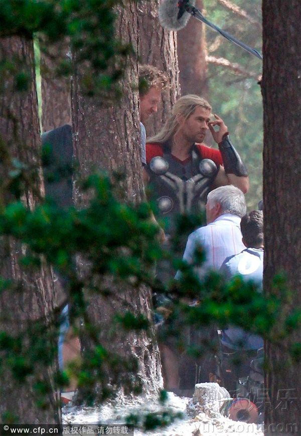 Los Vengadores: La era de Ultrón se estrena el próximo 1 de mayo de 2015 y, después de sumar a Andy Serkis (El amanecer del planeta de los simios) a su reparto y de confirmar al 'cast' al completo para la próxima Comic-Con de San Diego, tenemos nuevas imágenes del rodaje para ti. En ellas aparecen Chris Hemsworth y Chris Evans, que interpretan a los héroes de Marvel Thor y Capitán América.