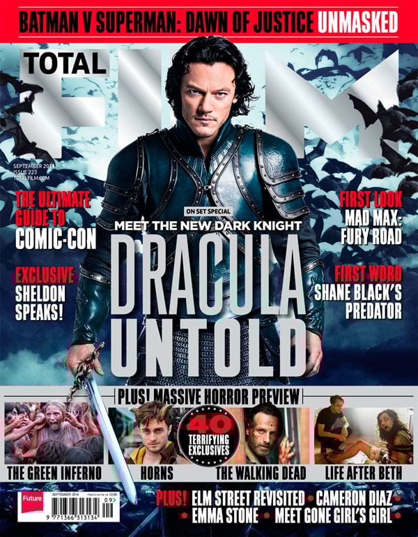 Drácula. La leyenda jamás contada se estrena el próximo 17 de octubre y, aunque Luke Evans encarna a Bardo en El hobbit: batalla de los cinco ejércitos, la revista Total Film se ha decantado por su príncipe Vlad Tepes para sus dos últimas portadas. El actor de Fast & Furious 6 se mete en la piel del legendario héroe nacional rumano, al que luego Bram Stoker convertiría en el conde Drácula de la Literatura.