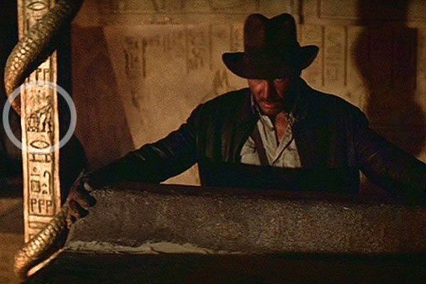 Los famosos R2D2 y C3PO de La guerra de las galaxias hacen un cameo, en forma de Jeroglífico, en En busca del arca perdida, en una de las columnas del Pozo de las almas.