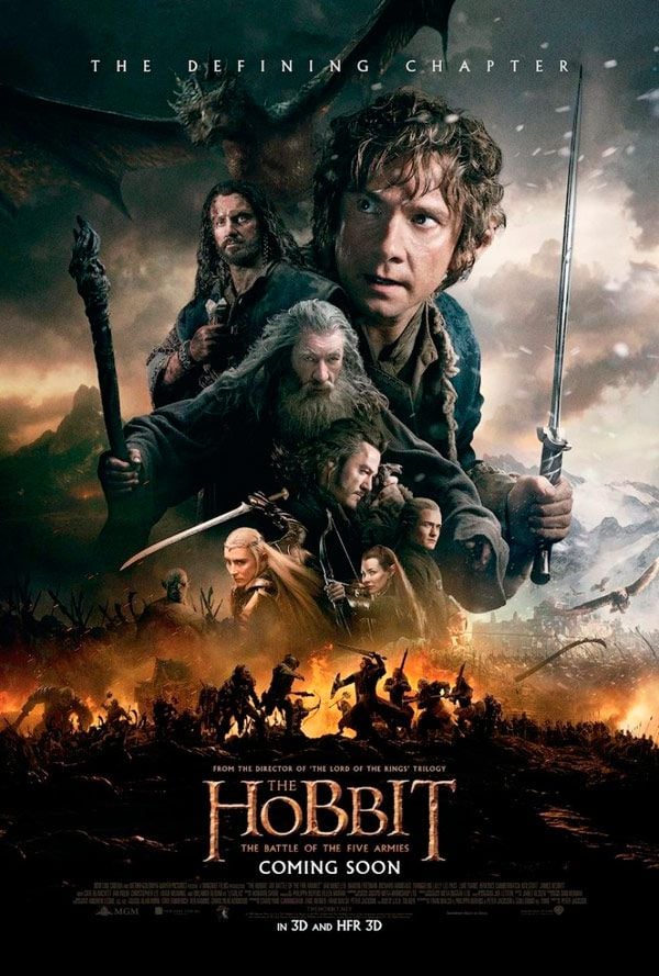 New Line Cinema ha lanzado un nuevo póster internacional de El hobbit: La batalla de los cinco ejércitos, la última entrega de la épica trilogía basada en el best-seller de J.R.R. Tolkien que ha dirigido Peter Jackson. Protagonizada por Martin Freeman (Sherlock), la cinta pondrá punto final a la aventura de Bilbo, Gandalf, Thorin y su compañía de enanos. Tras arrebatar el control de Erebor al malvado Smaug, su ira provoca que se desate una terrible guerra, en la que enanos, elfos y humanos deberán luchar juntos si quieren salvar sus vidas y la supervivencia de la Tierra Media.