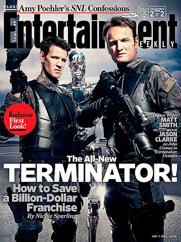 Cada vez queda menos para volver a disfrutar de Arnold Schwarzenegger en el papel del mítico cíborg en Terminator: Genisys. Aunque los fans ya han podido ver algunas imágenes del rodaje, aún no había ninguna fotografía oficial, pero esta semana Entertainment Weekly saca en portada a Emilia Clarke (Sarah Connor), Jai Courtney (Kyle Reese), Jason Clarke (John Connor) y Matt Smith (sin papel conocido) caracterizados como sus personajes.