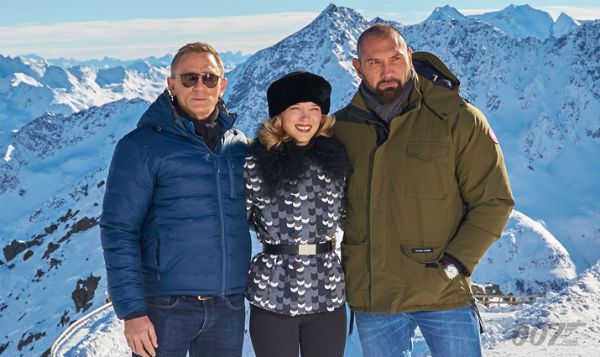 La nueva película de James Bond Spectre se estrena el próximo 6 de noviembre en España y, después de mostrarte las primeras imágenes de Daniel Craig en el rodaje, la web oficial 007.com acaba de compartir nuevas instantáneas del reparto desde el complejo de esquí de Sölden en Austria. Desde allí han posado el propio Craig, acompañado por la francesa Léa Seydoux (Madeleine Swann) y Dave Bautista (Hinx).