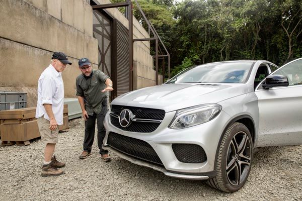 Jurassic World se estrena el próximo 12 de junio en España y, a la espera del nuevo tráiler que se verá durante la Super Bowl 2015, ya puedes deleitarte con tres nuevas fotos del filme. En ellas aparecen los personajes de Chris Pratt y Bryce Dallas Howard y, de fondo, el nuevo Mercedes GLE 63 AMG Coupé.