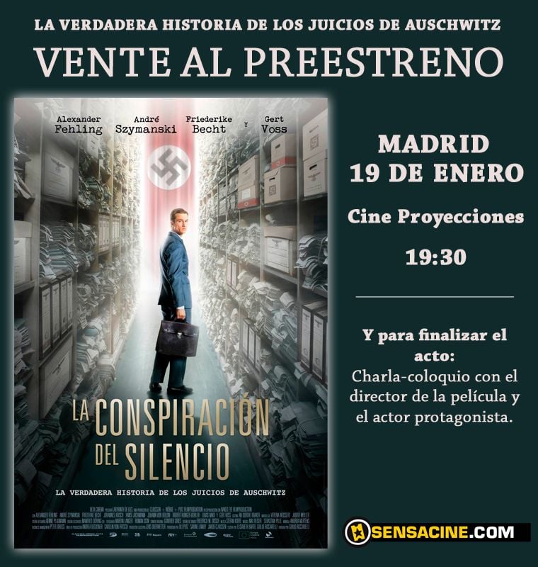 Asiste el próximo lunes 19 de Enero a las 19:30 en Madrid, Cine Proyecciones, al exclusivo preestreno de 'LA CONSPIRACIÓN DEL SILENCIO' y descubre la verdadera historia de los juicios de Auschwitz.