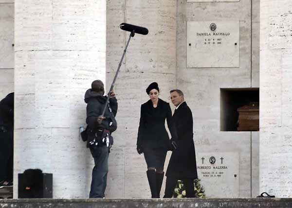 Daniel Craig y Monica Bellucci están grabando en Roma nuevas escenas de Spectre, según informaciones de ComicBook. Así lo muestran las imágenes en las que se ve al actor que interpreta a James Bond (por cuarta vez) y a la actriz en un cementerio.