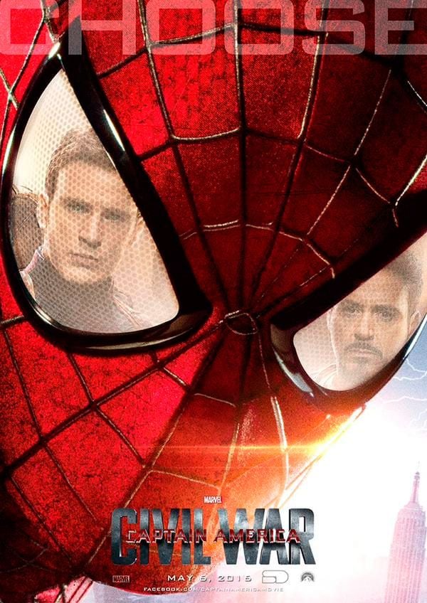 Capitán América: Civil War se estrena el 6 de mayo de 2016 y, a la espera de saber si Spider-Man aparecerá en esta o en Vengadores: La era de Ultrón, ya tenemos el primer póster 'fan made' del Hombre Araña por cortesía de deviantArt. El cartel nos muestra al Trepamuros de Marvel obligado a elegir entre Iron Man (Robert Downey Jr.) y Capitán América (Chris Evans). ¿Cómo será la película?